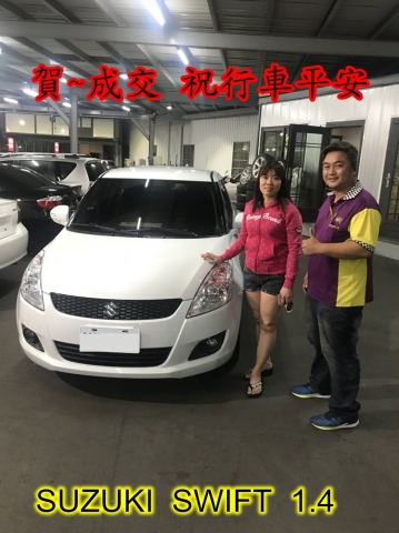 成交見證:賀~成交 感謝 彰化員林市 范小姐 來店選購 鈴木 SWIFT 1.4 美車一部 感謝您的肯定我們會更加努力 全體員工向您致上十二萬分的敬意 ~在此祝您行車平安 ~