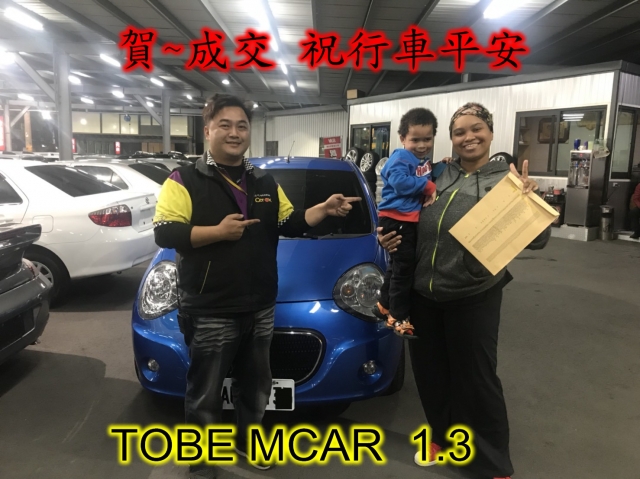 成交見證:賀~成交 感謝 員林 珍JANE 來店選購 TOBE MCAR 1.3 美車一部 感謝您的肯定我們會更加努力 全體員工向您致上十二萬分的敬意 ~在此祝您行車平安 ~