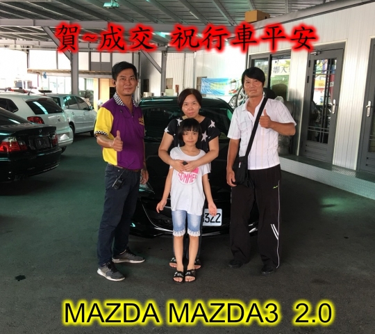 成交見證:賀~成交 感謝 彰化社頭 李小姐 來店選購 馬三 2.0 美車一部 感謝您的肯定我們會更加努力 全體員工向您致上十二萬分的敬意 ~在此祝您行車平安 ~