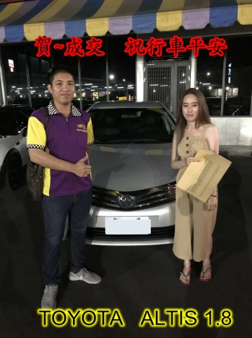 成交見證:賀~成交 感謝 彰化田尾 胡小姐 來店選購 豐田 ALTIS 1.8 美車一部 感謝您的肯定我們會更加努力 全體員工向您致上十二萬分的敬意 ~在此祝您行車平安 ~