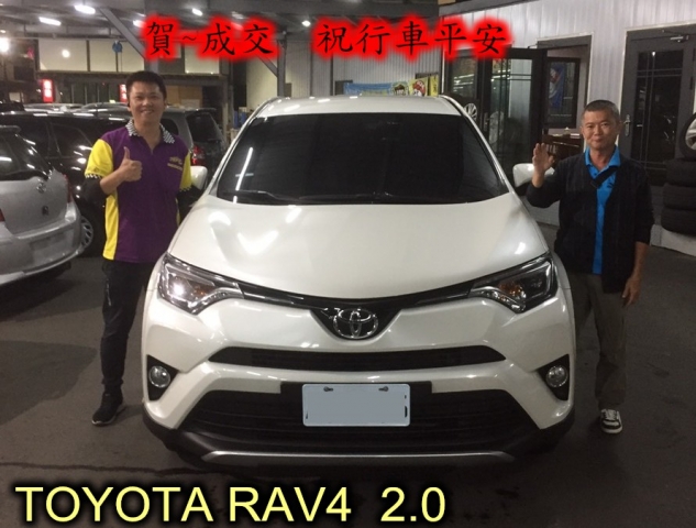 成交見證:賀~成交 感謝 台北 胡先生 來店選購 豐田 RAV4 2.0 美車一部 感謝您的肯定我們會更加努力 全體員工向您致上十二萬分的敬意 ~在此祝您行車平安 ~