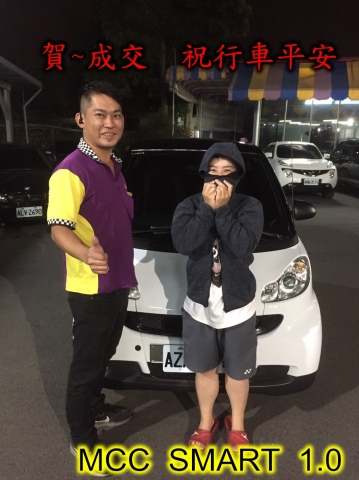 成交見證:賀~成交 感謝 彰化 吳小姐 來店選購 MCC SMART 1.0 美車一部 感謝您的肯定我們會更加努力 全體員工向您致上十二萬分的敬意 ~在此祝您行車平安 ~